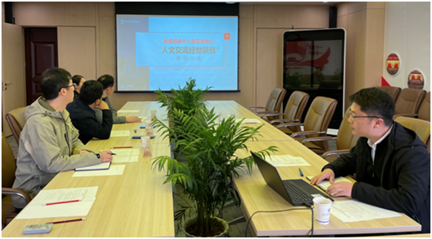 According to the Notice on Promoting the Application of the Economic and Cultural Exchange Program issued by the Center for People-to-people and Cultural Exchange of the Ministry of Education, SXPI was identified as the implementation unit of the Economic and Cultural Exchange Program in 2022. In order to promote the smooth development of the "People-to-people Exchange Jingshi Project" of SXPI, on the morning of March 1st, Hu Guangdong, education service manager of Beijing Huatec Information Technology Co., Ltd. came to SXPI for project docking. Qin Jingjun, dean of the School of International Education, Bai Guozheng, vice dean of the School of Information Engineering, and members of the School of International Education had an exchange discussion with each other.