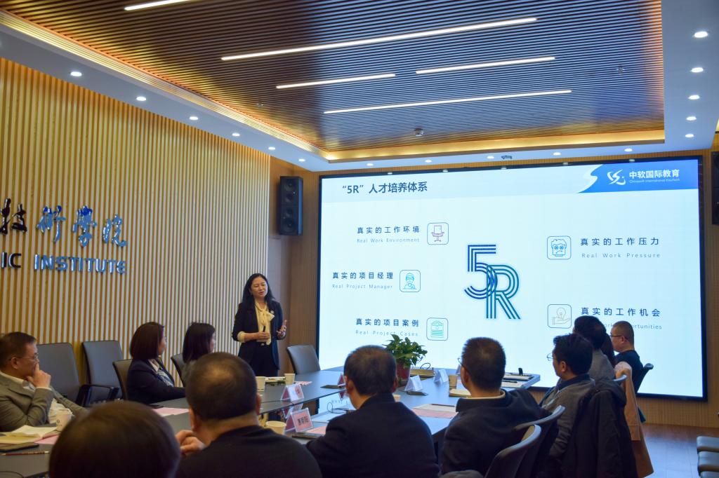 After listening to Secretary Hui Zhaoyang's detailed introduction, Vice-President Cheng Huan expressed her admiration and respect to the philosophy and thick history of SXPI. Cheng Huan made a project report whose theme is "integrate industry-education deeply, build a new ecology for talented people", introduced Chinasoft, and the cultivating cooperation mode between schools and Chinasoft. She said that Chinasoft would provide guarantee for the deepening cooperation with the most open concept and the greatest sincerity, dig out the highlights of school-enterprise cooperation, jointly innovate the new model of school-enterprise cooperation, and achieve resource sharing and win-win development.