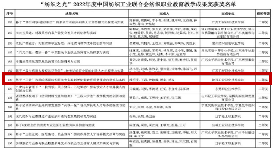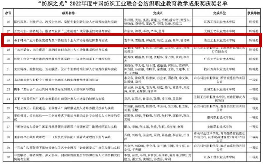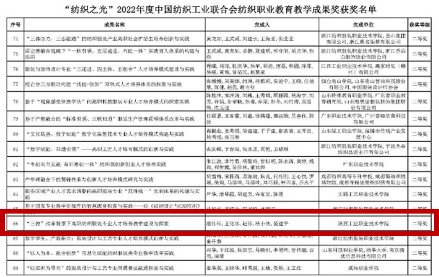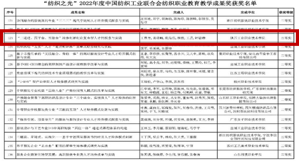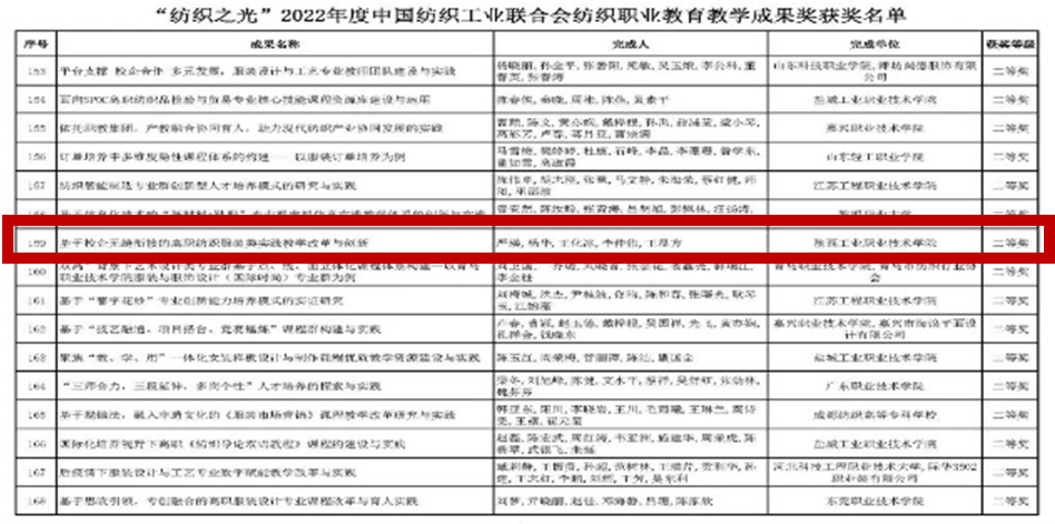 Recently, China National Textile And Apparel Council ( CNTAC ) announced the results of 2022 Textile Vocational Education Teaching Achievement Award.