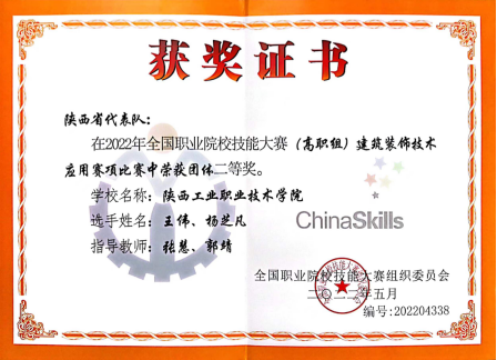 From August 24 to 27,the 2022 National Vocational Colleges Skills Competition, Architectural Decoration Technology Application category, was held in Shandong Urban Construction Vocational College, a total of 57 colleges and universities across China participated in this competition. Under the guidance of SXPI teachers, Zhang Hui and Guo Jing, SXPI representative team, Wang Wei and Yang Zhifan from the School of Civil Engineering won the second prize.