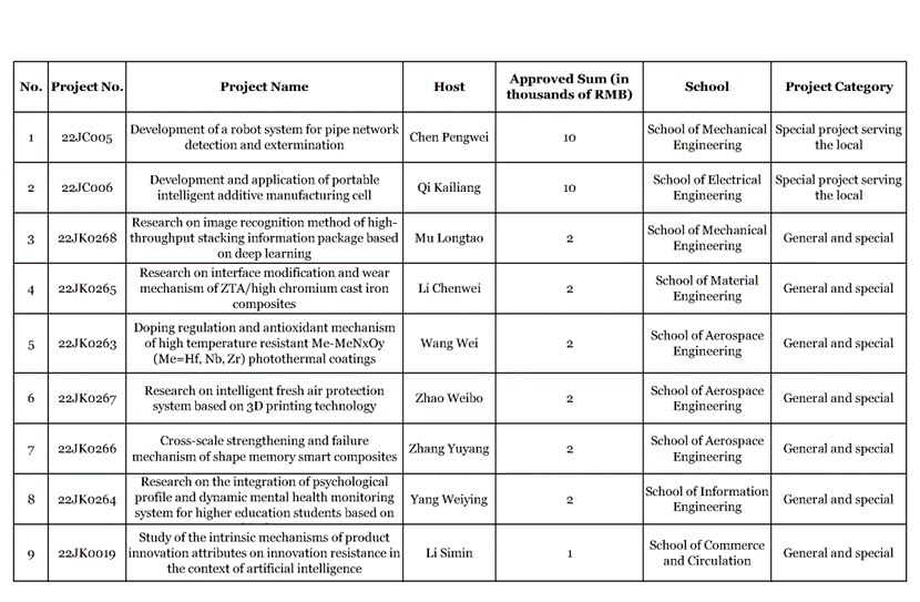 Recently, according to the Notice of Shaanxi Provincial Department of Education on the issuance of 2022 Annual scientific research Plan <Document No. 796 (2022)>, SXPI applied for 13 scientific research plan projects.9 projects were approved, with a total of 330,000 yuan of funding. And the project approval rate was 70%.The number of approved projects and the amount of approved funds of SXPI ranked the first in higher vocational institutions in Shaanxi. Among them, there were 7 general special research projects (6 general special projects in natural sciences and 1 general special project in humanities and social sciences) with a funding of 130,000 yuan. There were 2 local special scientific research projects, with a funding of 200,000 yuan.