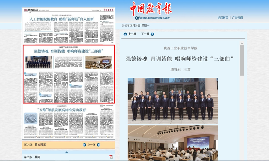 Over the years, SXPI took the improvement of teachers' teaching ability as a breakthrough, facing the whole process of teaching and learning, and the whole process of teacher growth, which realized the "double improvement" of teachers' ideological and political quality and teaching ability. SXPI built a modern vocational education teacher training system of "Three Measures to Strengthen Morality, Four Dimensions to Support, Five Steps to Advance".