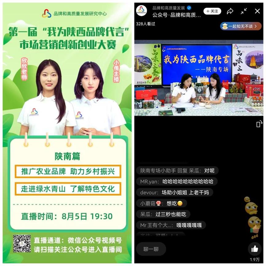 From August 2nd to 5th, Ms. Yang Xin, a teacher and Cai Sizhu, a student from the School of Commerce and Circulation of SXPI, were invited to participate in the sixth live broadcast of the summer series of "I speak for Shaanxi Brands"--a special activity in southern Shaanxi. The livestreaming event was organized by the Shaanxi Brand and High-quality Development Research Center.