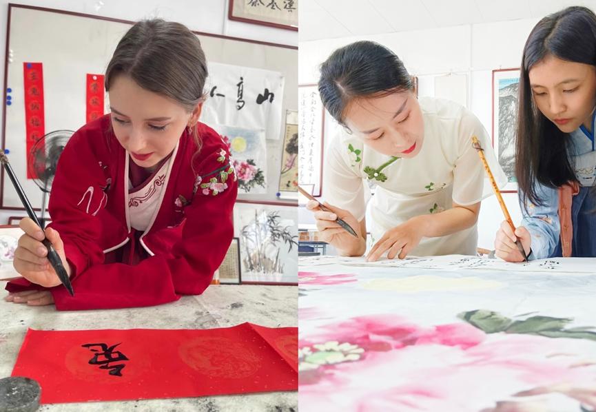 Teachers instructed foreign students in calligraphy