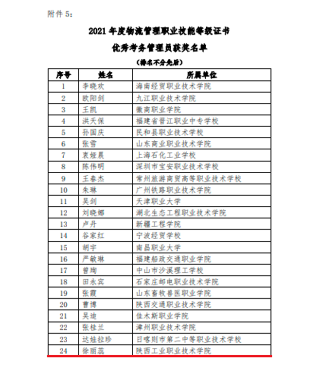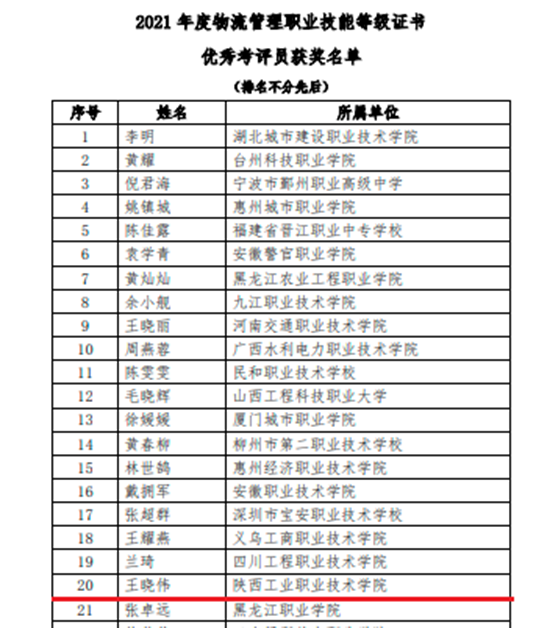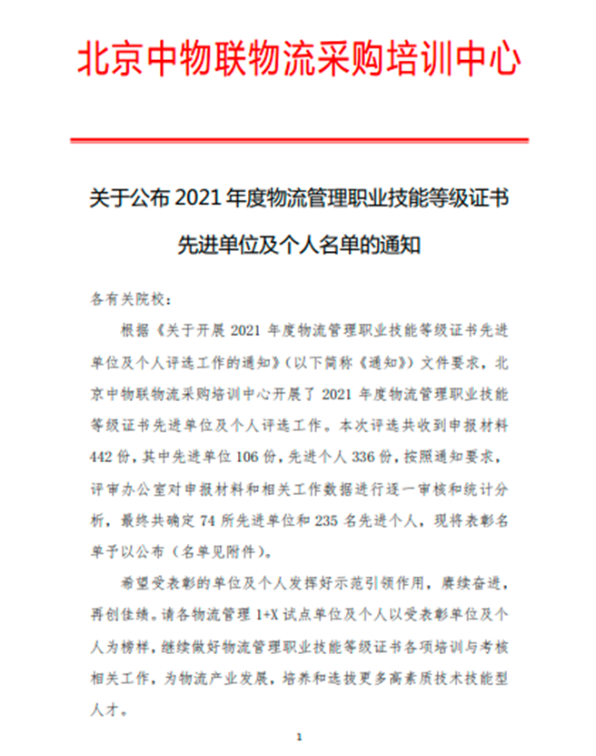 On June 16th, Beijing CFLP Logistics Procurement Training Center issued a notice on the "2021 Logistics Management Vocational Skills Certificate Advanced Units and Individuals List". SXPI was awarded the model assessment site, and Ms. Wang Hongyan, Ms. Xu Lirui, and Mr. Wang Xiaowei were rated as outstanding tutors, excellent examination administrators and excellent examiners.