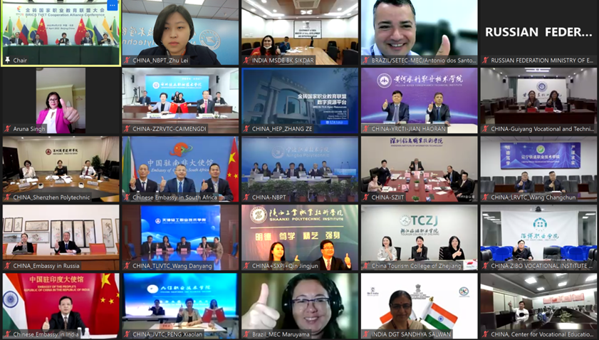 The vocational education authorities of BRICS fully affirmed and actively supported the establishment of the Alliance. The Ministers of Education of the five countries delivered speeches in the form of video or congratulatory letters respectively. They also said they would encourage and support their member units to actively participate in the building of the BRICS Vocational Education Alliance and promote practical cooperation.