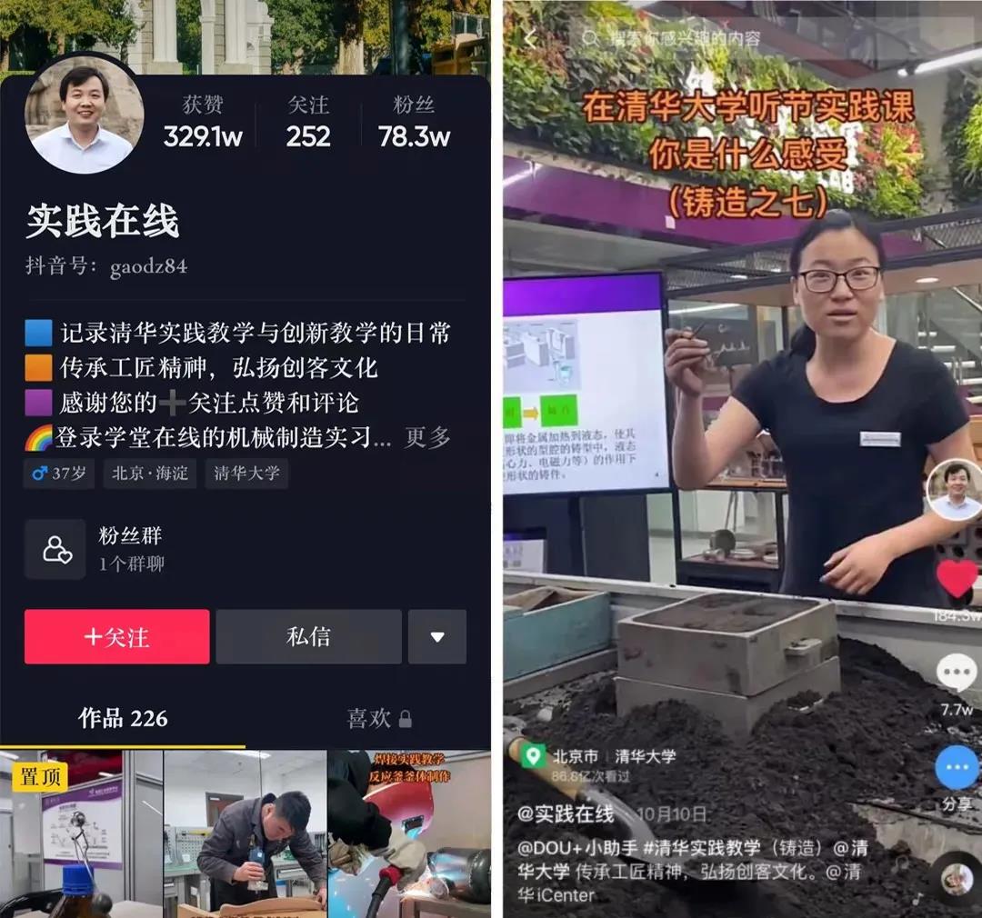 Recently, the Tiktok account “Shijianzaixian” washes over the online platform, among which its practical classes have been welcomed by many netizens, with a total of over 100 million views. One of the videos has been played 81.76 million times and received 1.83 million likes. The practical lessons are from iCenter, a training center for basic industry of Tsinghua University.Gao Dangxun,the founder and photographer of the account, and Xing Xiaoying,a post-90s female teacher in the video,are both alumni of Shaanxi Polytechnic Institute (SXPI).