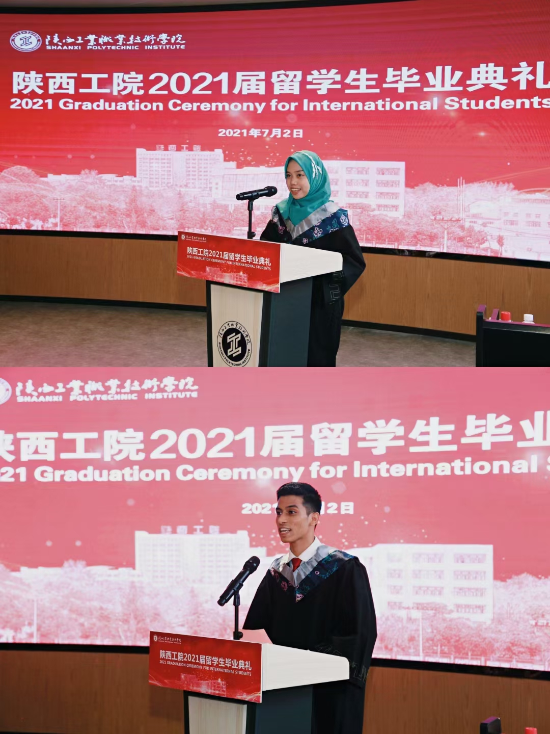 Meng Liang, the representative student from Bangladesh, and Li Meili, the representative student from Indonesia, delivered their speeches respectively. In his speech, Meng Liang shared his growth and harvest in the past three years, saying that this was the most memorable and meaningful period of study. In her speech, Li Meili said that she would continue to pursue her dream bravely by adhering to the school motto of “being virtuous, studious, refined and sturdy”, and would pass on the craftsman spirit of SXPI to the whole world.