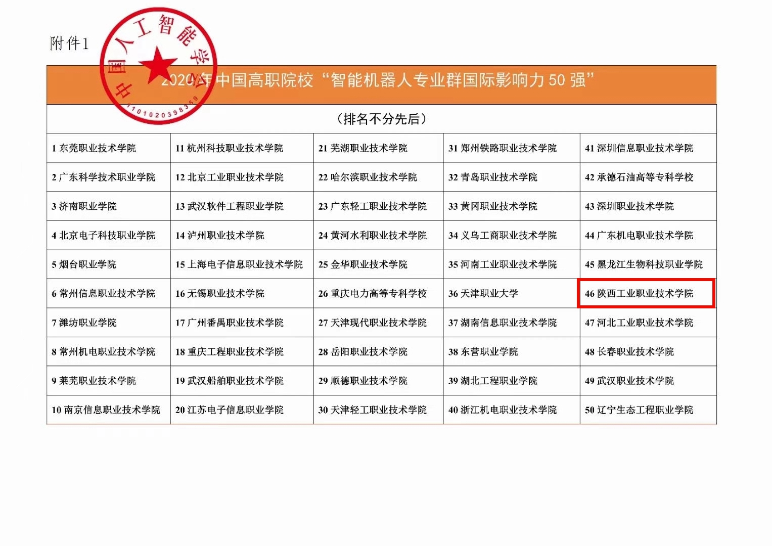 On November 22, the "2020 Global Unmanned SystemConference" and the "Intelligent Robot Education Industry Education Integration Summit Forum" sponsored by China Artificial Intelligence Society were held in Zhuhai City, Guangdong Province.The Industrial Robot Technology Specialty of Aeronautical Engineering school, SXPI,won the honorary title of "Top 50 International Influence of Intelligent Robot Professional Group in Higher Vocational Colleges of China".
