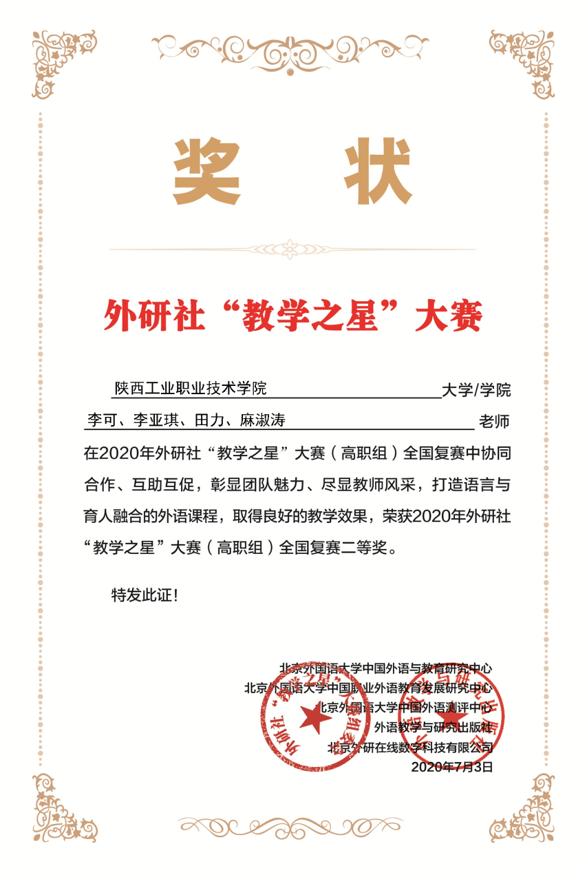 Recently, hosted by the Foreign Language Teaching and Research Press, the National contest rematch of 2020 “Teaching Star” was completely finished. SXPI teachers, Li Ke, Li Yaqi, Tian Li, Ma Shutao from Public Course Teaching Department won the second prize.