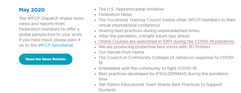 Apart from these, in “The Vocational Education Information Monthly” of June, published by WFCP, taking SXPI as an example, the article introduces how SXPI organizes online teaching during the special period of COVID-19 virus pandemic and explores how to reduce the impact of class-delaying based on the experience of SXPI.