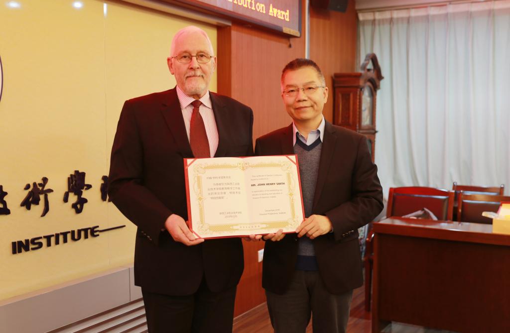 SXPI Party Secretary Hui Zhaoyang presented Mr. John Smith with a Special Contribution Award Certificate and Medal at the symposium on John Smith working in SXPI for 10 years on December 25, 2018. Mr. John Smith, the winner of the “Sanqin Friendship Award” from Shaanxi government in 2015, has been teaching English in SXPI since 2009. The Special Contribution Award was conferred to John for commending his important contribution to SXPI teaching works.