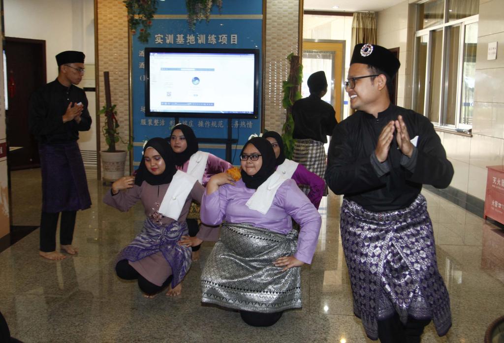 Chef Jasni Bin Mohamed Supandi, Tutor of Culinary Arts from Management & Science University(MSU), Malaysia, and his 26 bachelor students visited SXPI on March 25. SXPI president Ms. Zhang Xiaoyun, vice president Mei Chuangshe, officials from International office, Business Management School, and students studying tourism management, hotel management hosted the delegation. The day was full of happiness and exciting for both Malaysian and Chinese students as they shared the great time with touring SXPI campus, attending lecture, making cultural performance and dinning together.