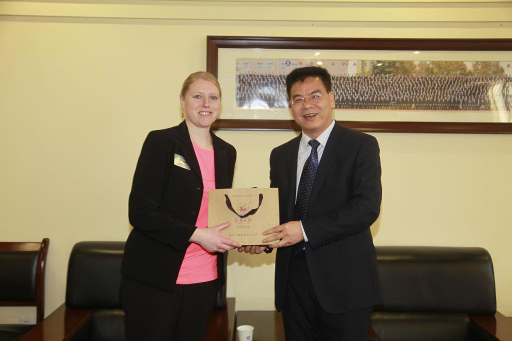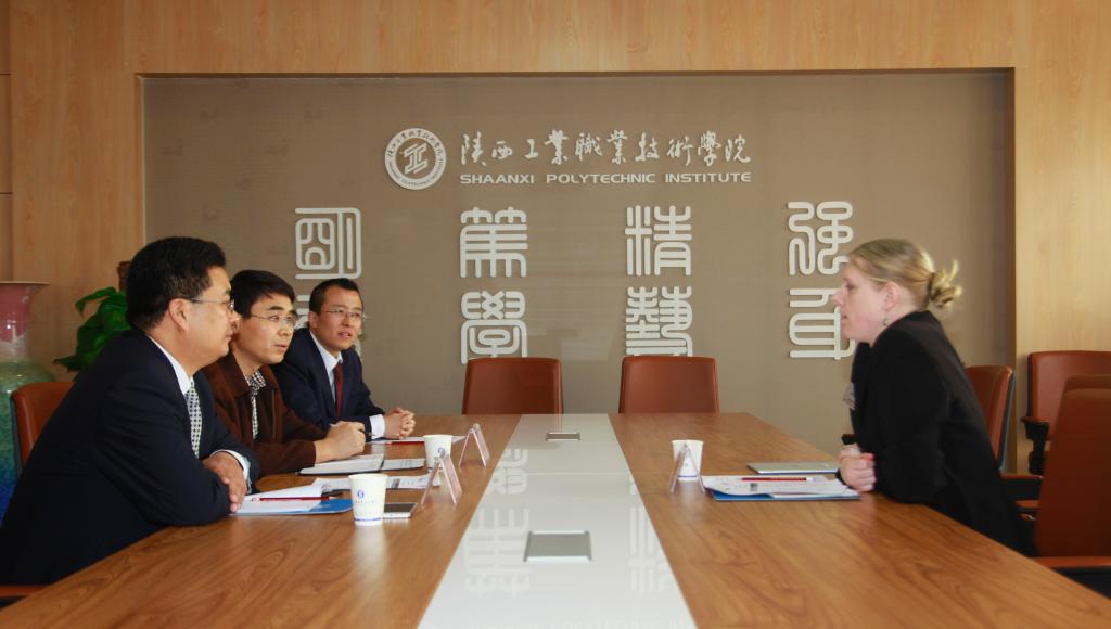 After the meeting with Liu Yongliang, Ms Samantha Hansel met with officials from SXPI International Office and Academic Office. The two sides discussed cooperation on students and teachers exchange, especially, SXPI students to study bachelor degrees in UIU. Ms Samantha Hansel also made a SXPI campus tour and met Mr. Mac and Mr. lenwood,two American teachers who work in SXPI.