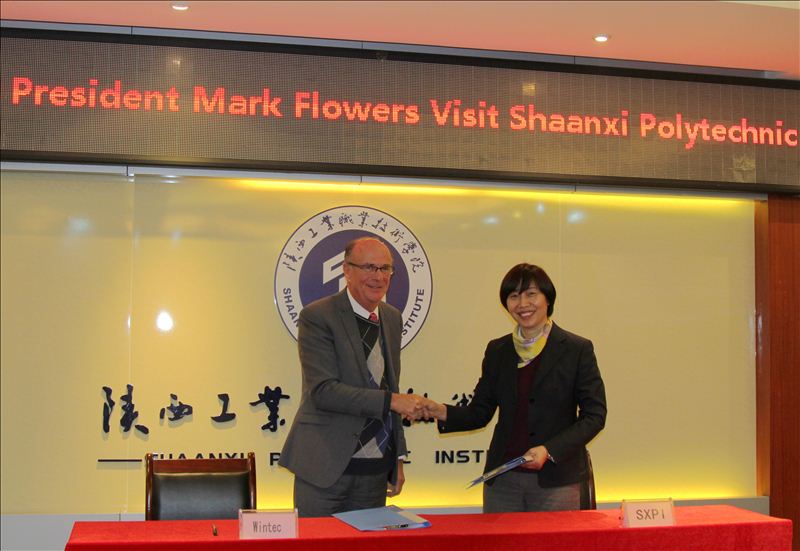 On March 4,Mark Flowers, president of Waikato Institute of Technology, New Zealand, visited Shaanxi Polytechnic Institute. SXPI president Zhang Xiaoyun,Deputy Party Secretary and Vice President LiuYongliang, and other staffs met the guests.