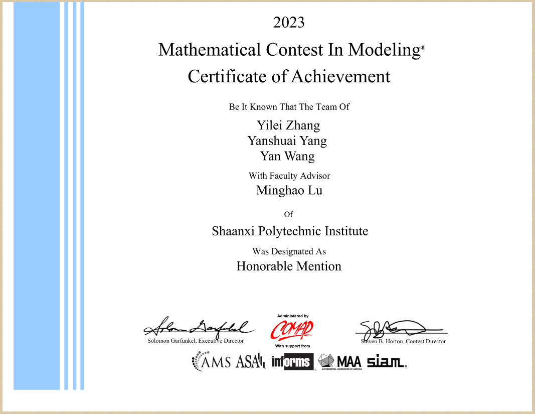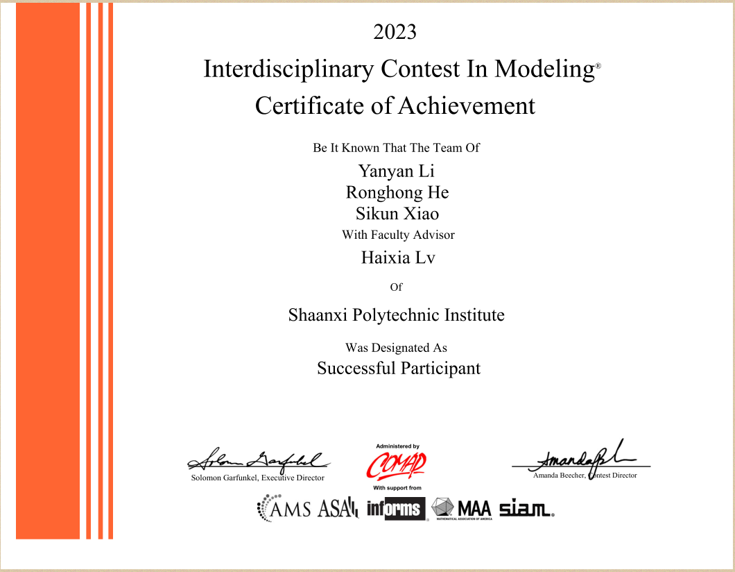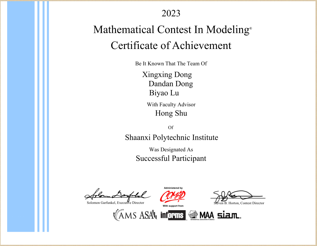 Recently, the results of the 2023 American College Student Mathematical Modeling Competition and the Interdisciplinary Modeling Competition(MCM/ICM)were officially announced.SXPI three representative teams,won the Second Prize and two Third Prizes. This was also the first time for SXPI students to participate in this competition and won awards.