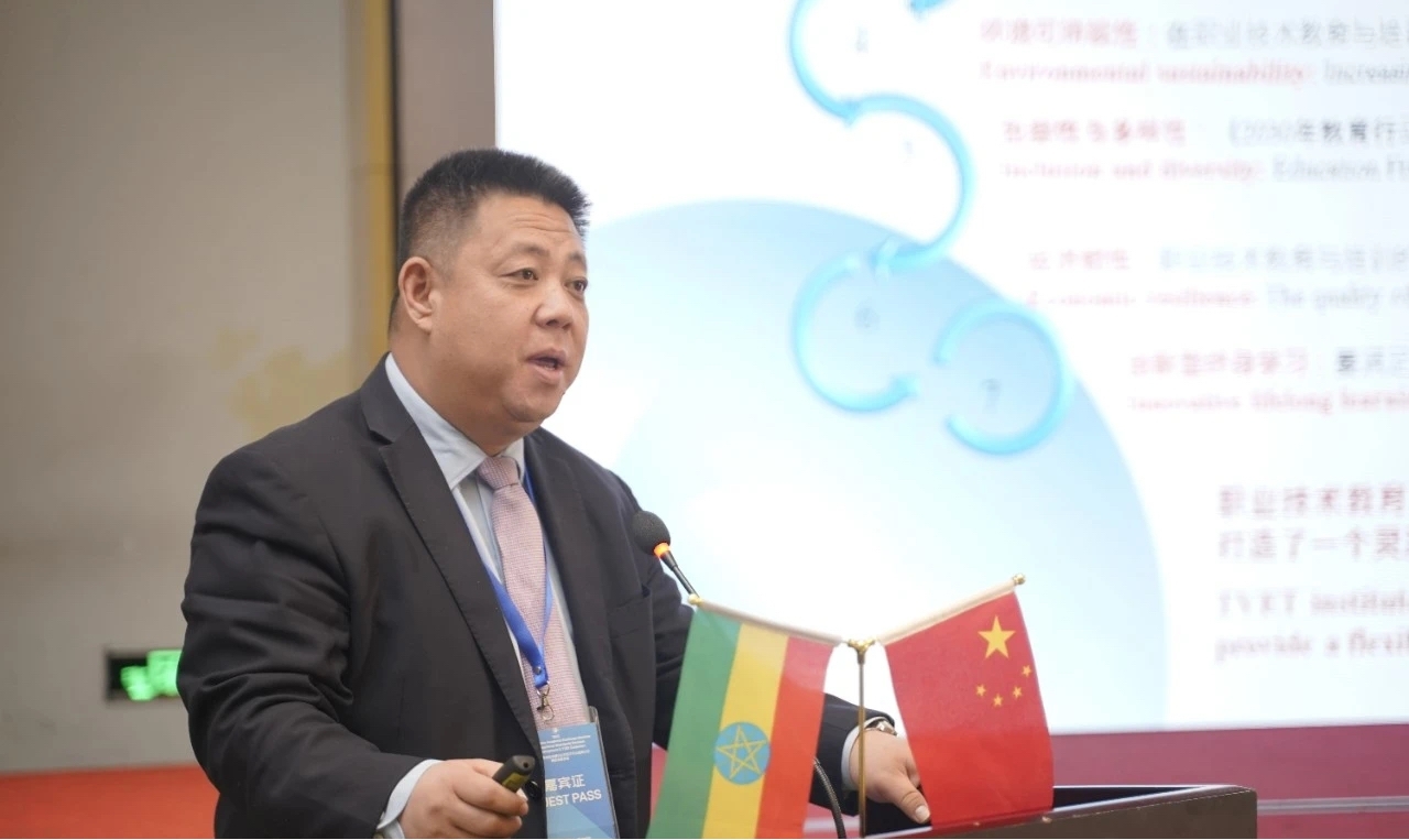 On November 29, the academic exchange seminar and vocational education exhibition on the revision and development of vocational standards between China and Ethiopia were held. On behalf of Education Department of Shaanxi Provincial Government, Shen Xuefeng gave a speech. Duan Jun gave a keynote speech at the meeting, detailing the action of SXPI to open education and going global, and sating its achievements in overseas education. The speech was highly recognized by the attending delegates.