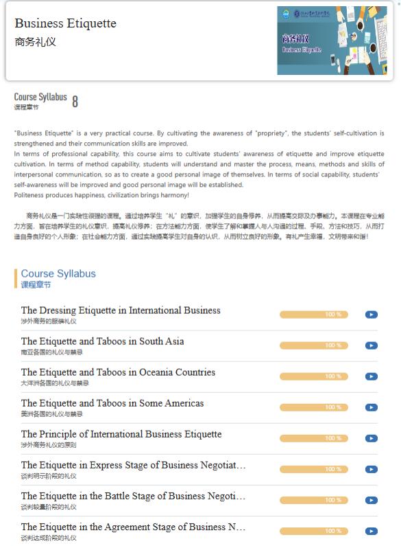 Screenshot of business etiquette course