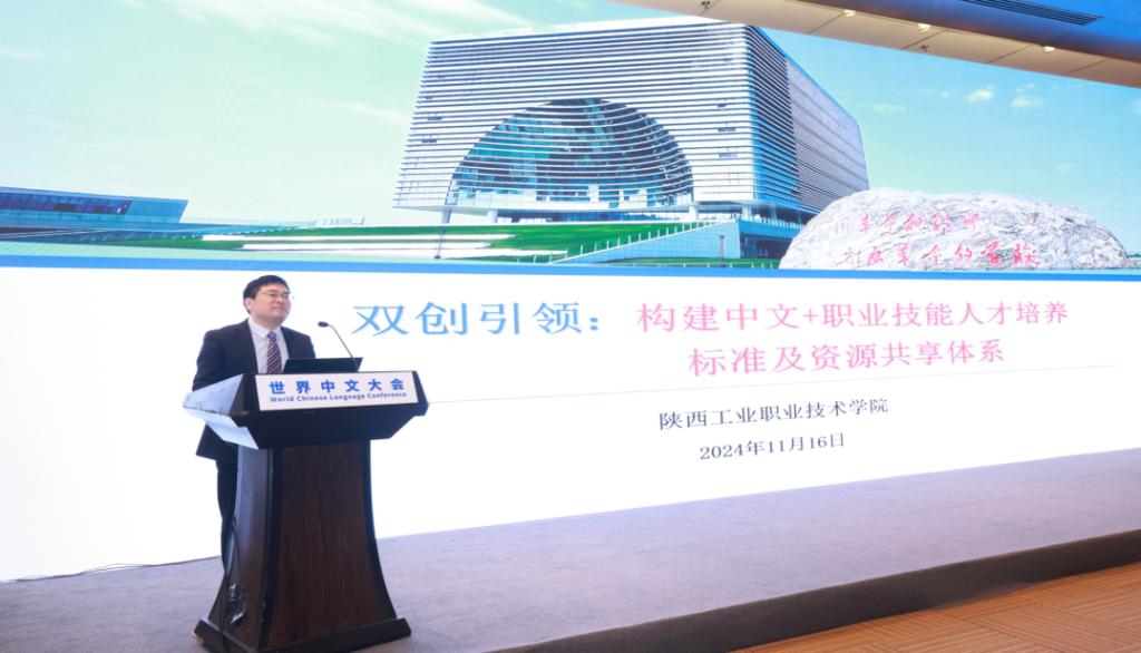 Tian Hao, the Deputy Secretary of the Party Committee of our university, was invited to participate in the seminar on "New Era, New Opportunities: Promoting the High-quality Development of 'Chinese + Vocational Skills' Education" held by the Center for Language Education and Cooperation of the Ministry of Education on November 16th. He delivered a keynote speech titled "Innovation and Entrepreneurship Leadership: Building a Talent Training Standard and Resource Sharing System for 'Chinese+Vocational Skills'." The speech focused on the core issue of talent cultivation in "Chinese+vocational skills" and shared the innovative experience and achievements of our university in building a talent training standard and resource system for "Chinese+vocational skills" through "creative transformation" and "innovative development," integrating international advanced experience. It won high praise from the participants.