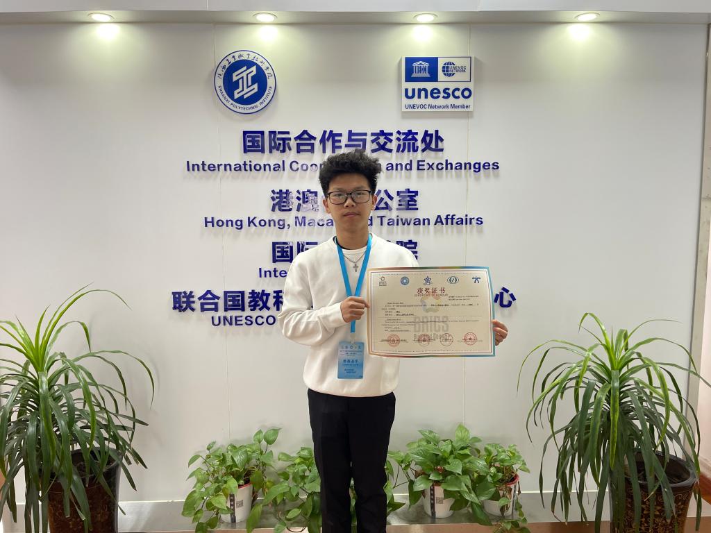 As an international student from Indonesia, Handy Sanjaya Kwok showcased the demeanor of international students in the competition. He said, "I feel extremely honored to win an award in such a high-level international competition. This is not only an affirmation of my personal efforts but also a recognition of the teaching quality of the school. I am very grateful to my teacher for his guidance and the school for its support."