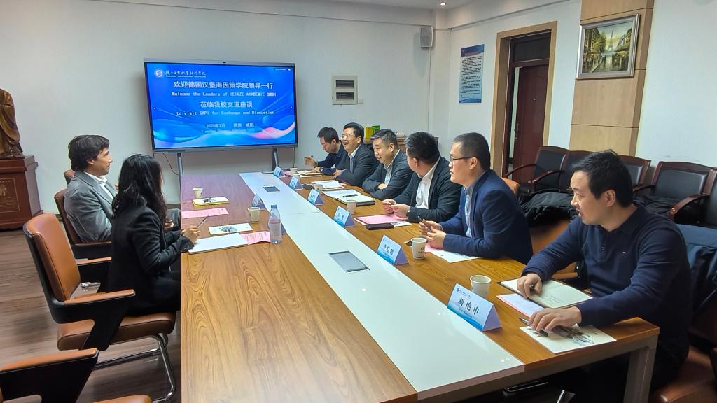 On February 20, 2025, Mr. Jan Heinze, the dean of the Heinze Academy in Hamburg, Germany, and Ms. Chen Qiaoli, the project supervisor, visited Shaanxi Polytechnic Institute for a return visit on cooperation and exchanges. Vice President Duan Jun of the university, together with the heads of the Personnel Office, the Continuing Education College, the School of Aeronautical Engineering, and the School of International Education, received the guests and held a discussion. The two sides reached important consensus on deepening vocational education cooperation and jointly building a "dual-system" teacher training base.