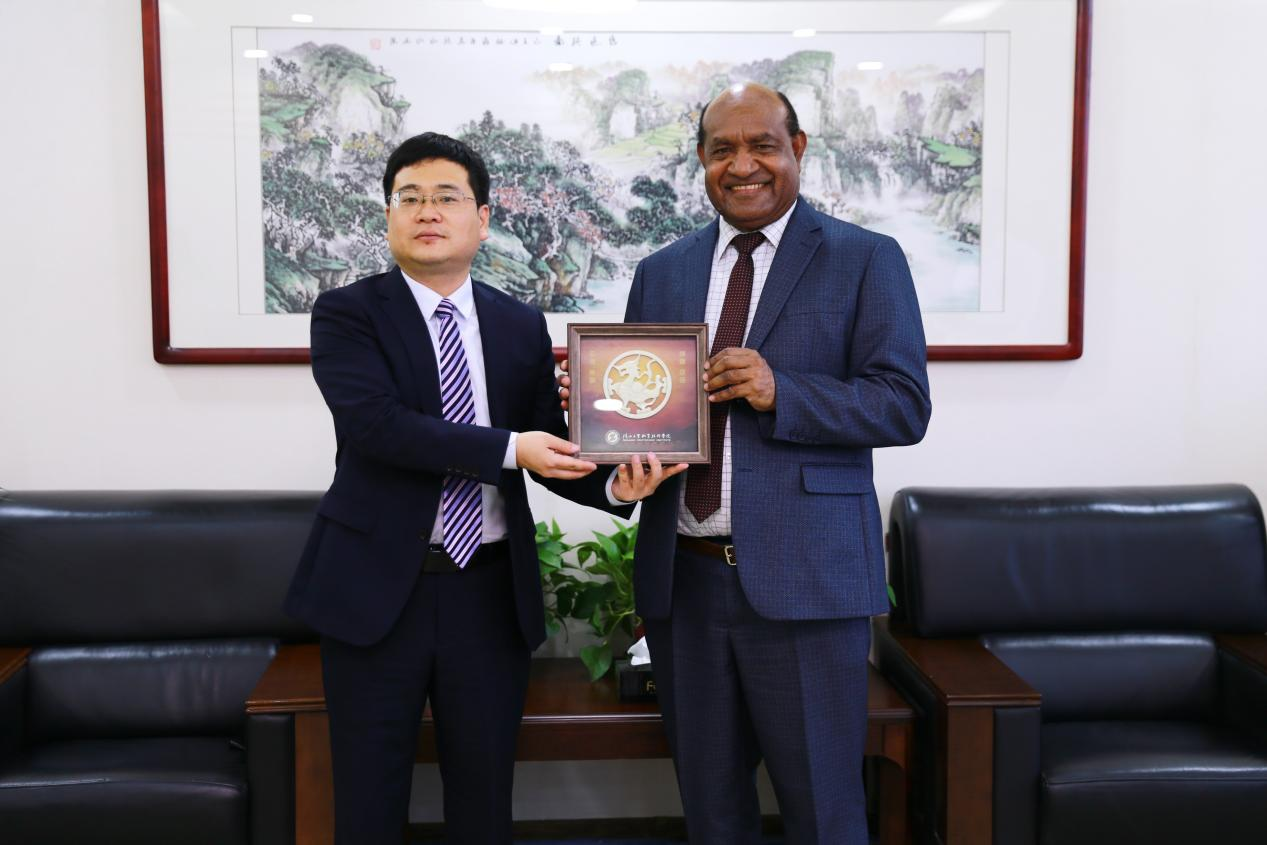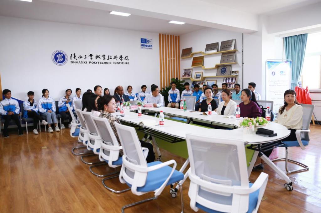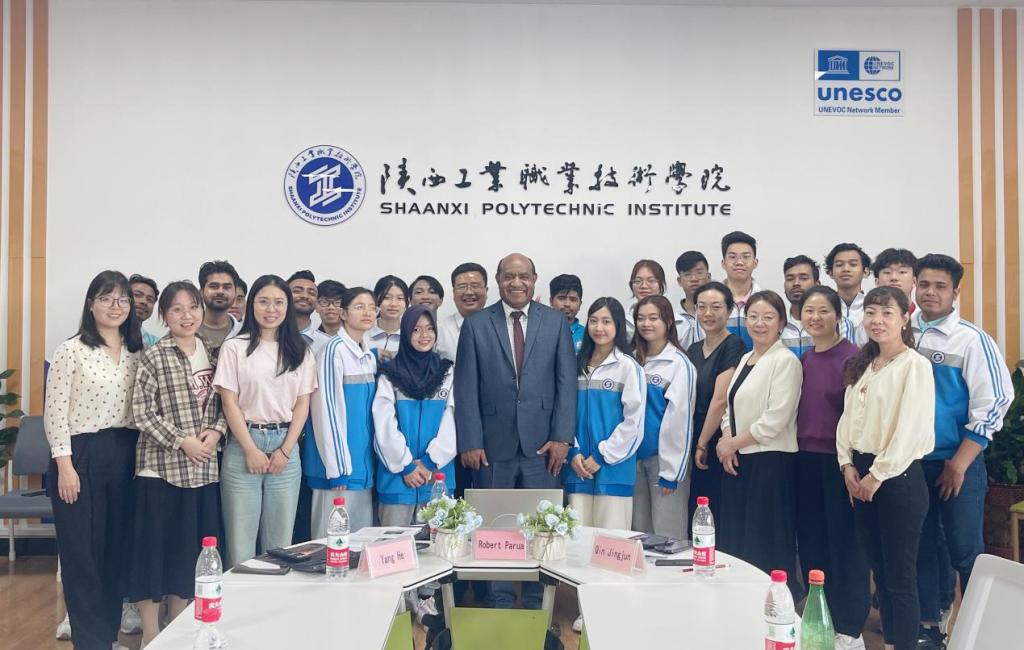 On May 10th, Robert Parua, an education program officer from UNESCO's East Asia Multisectoral Regional Office, visited Shaanxi Polytechnic Institute. He met with Deputy Party Committee Secretary Tian Hao and Dean of International Education School Qin Jingjun.