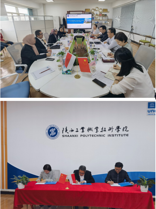 On June 4, a delegation from the Vocational College of Hasanuddin University in Indonesia, led by Dean Muh Restu Sirajuddin, visited Shaanxi Polytechnic Institute. The meeting was chaired by Dean Qin Jingjun of the School of International Education.