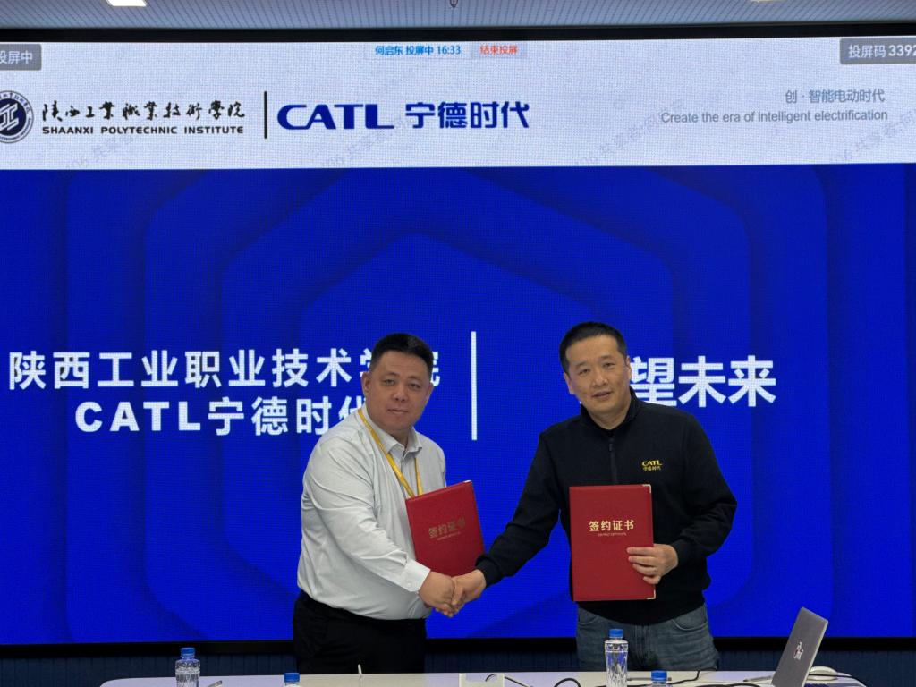 On April 17, President Liu Yongliang of Shaanxi Polytechnic University led a delegation to Contemporary Amperex Technology Co. Limited (CATL), a global power battery giant, and signed an agreement to jointly cultivate international modern craftsmen, supporting the Belt and Road Initiative. Deputy Party Secretary Tian Hao, Vice President Duan Jun, and relevant department heads accompanied the visit.